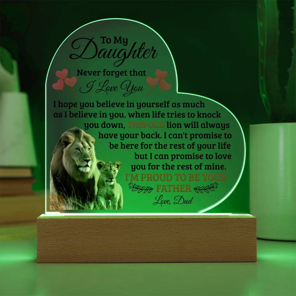 To My Daughter Old Lion – Acrylic Heart Plaque